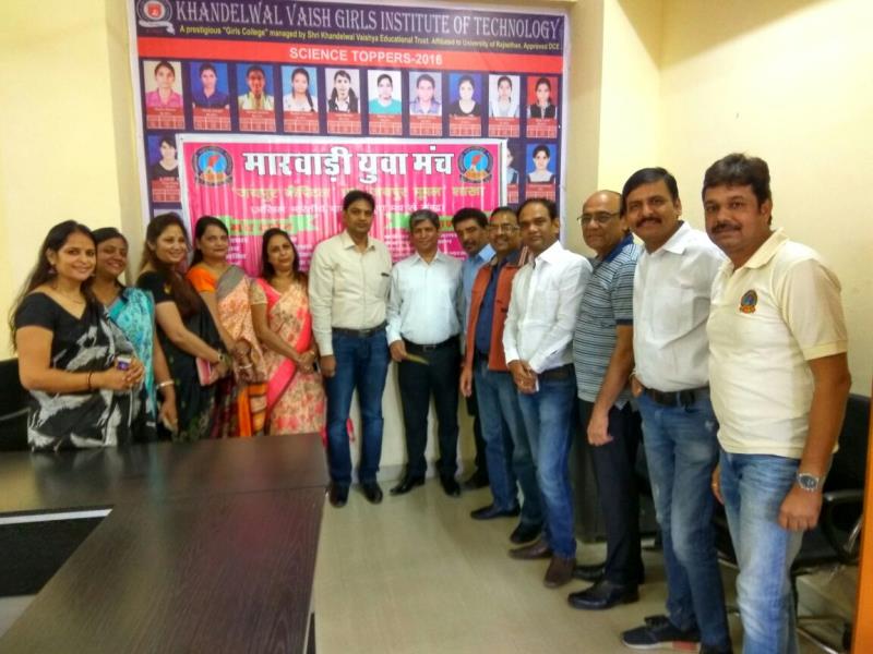 मारवाड़ी युवा मंच जयपुर कैपिटल एवं जयपुर मूमल शाखा के संयुक्त तत्वावधान में राष्ट्रीय प्रकल्प बेटी बचाओ बेटी पढ़ाओ के तहत खंडेलवाल वैश्य बालिका तकनीकी महाविद्यालय में बालिकाओं को छात्रवृत्ति, रुपए 11000/- आज दिनांक 22 नवम्बर को प्रदान किए गए।