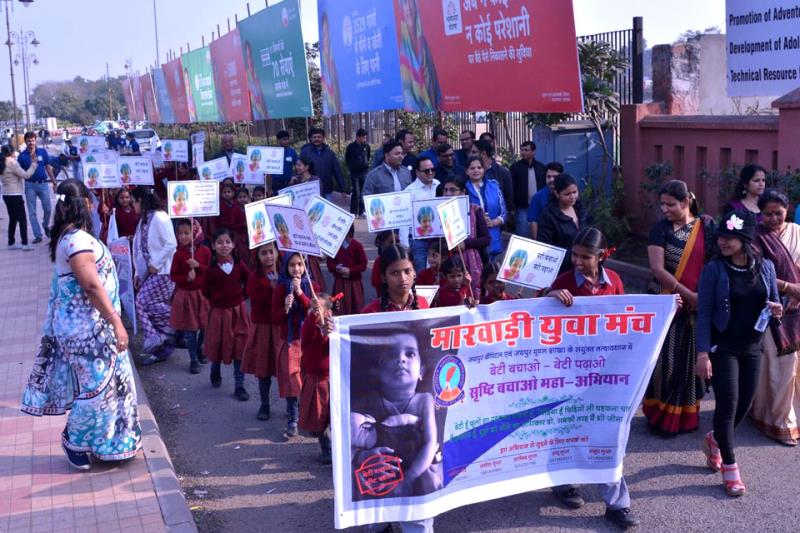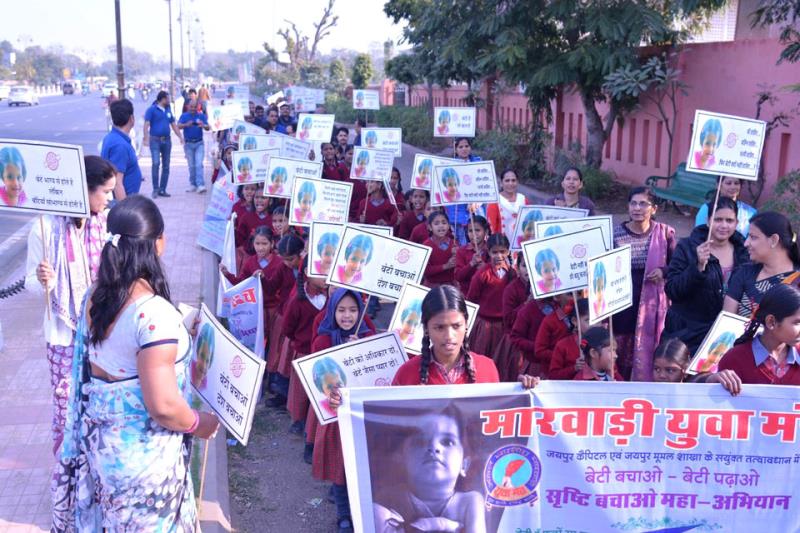मारवाड़ी युवा मंच जयपुर कैपिटल एवं जयपुर मूमल के संयुक्त तत्वावधान में और साथ में कुछ स्कूल की छात्राओं के साथ हाथ में तख़्तियाँ लिए और अपने मन के उद्गारों के साथ नारे लगाते हुए मंच के महत्वपूर्ण प्रकल्प कन्या भ्रूण संरक्षण के तहत अम्बेडकर सर्किल से अमर जवान ज्योति तक एक विशाल रैली का आयोजन किया गया।