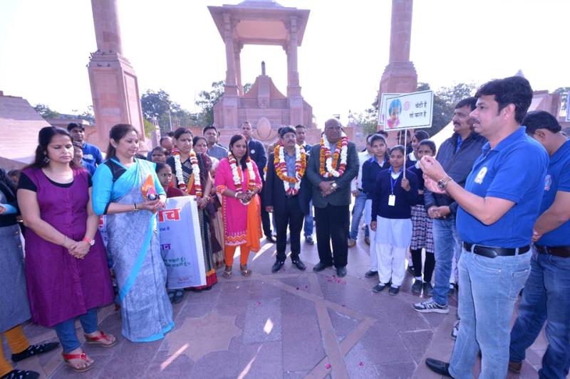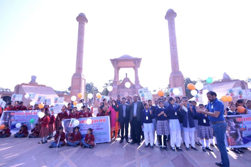 रैली का आरम्भ जयपुर ज़्वेलर्स एसोसिएशन के महत्वपूर्ण सदस्य एवं प्रमुख समाज सेवी श्री रामशरण जी गुप्ता ने ग़ुब्बारे छोड़कर किया।